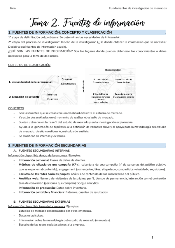 He publicado nuevos apuntes de 3º Fundamentos de Investigación de Mercados: Tema 2 - Fuentes de información de Investigación Comercial - Fundamentos de Investigación de Mercados - ADE UV.pdf