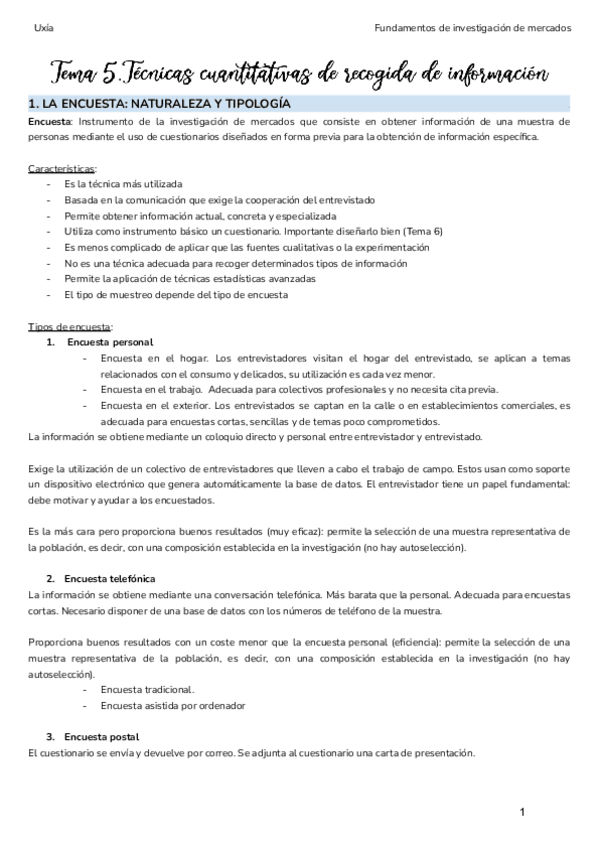 He publicado nuevos apuntes de 3º Fundamentos de Investigación de Mercados: Tema 5 - Diseño del cuestionario - Fundamentos de Investigación de Mercados - ADE UV.pdf