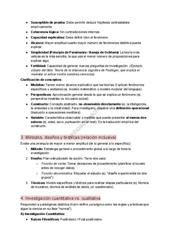 Resumen Tema 1 (Sanz Aparicio). Principio de Parsimonia y Cualidades de la Teoría. Relación inclusiva: Método > Diseño > Técnica. Cuantitativa vs Cualitativa (Positivismo vs Constructivismo / Estructurado vs Emergente). Diferencia mortal: Experimento (Al