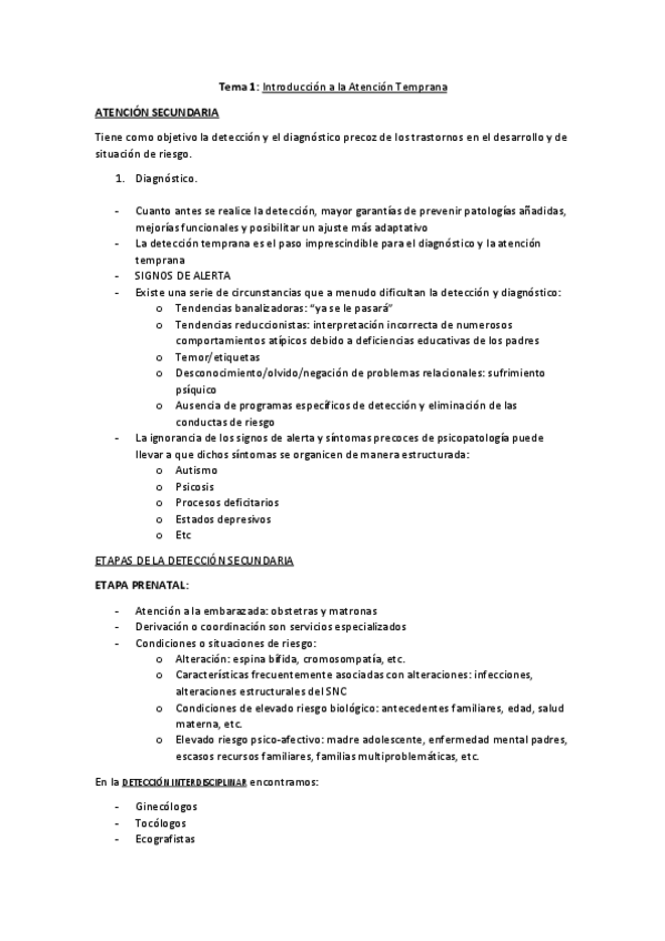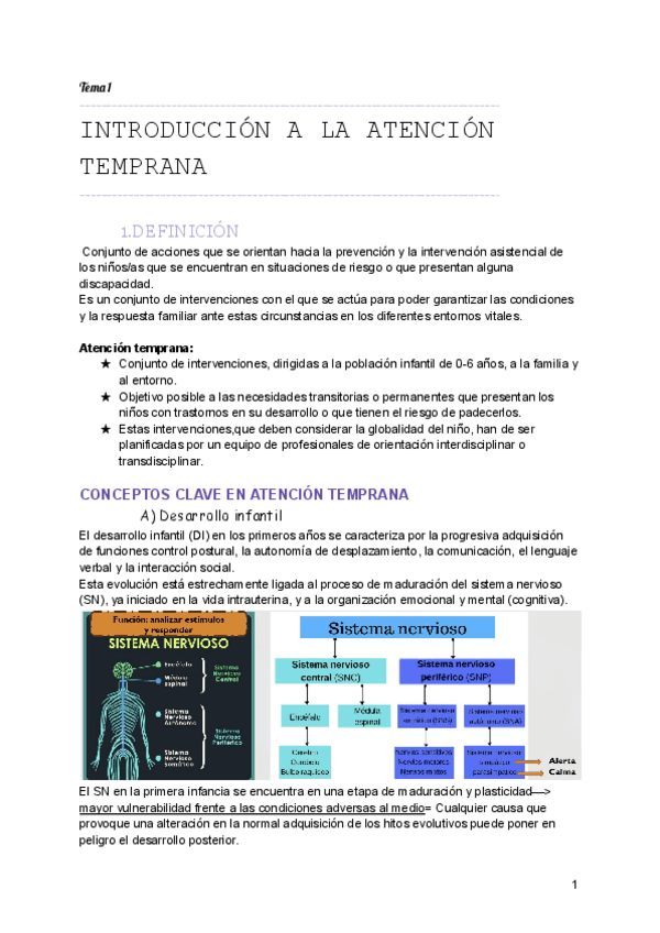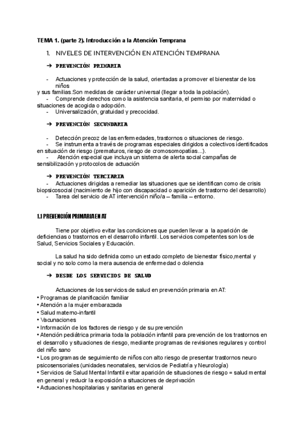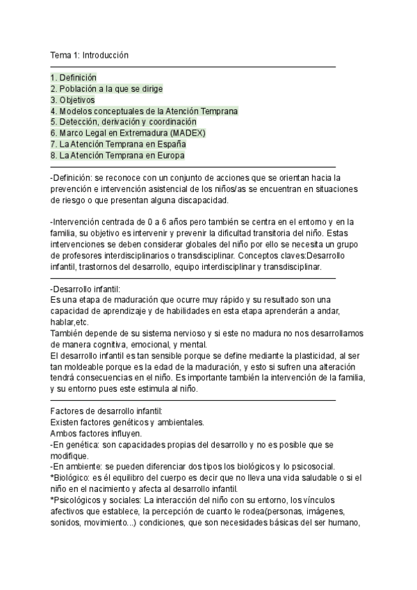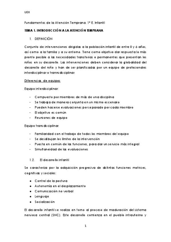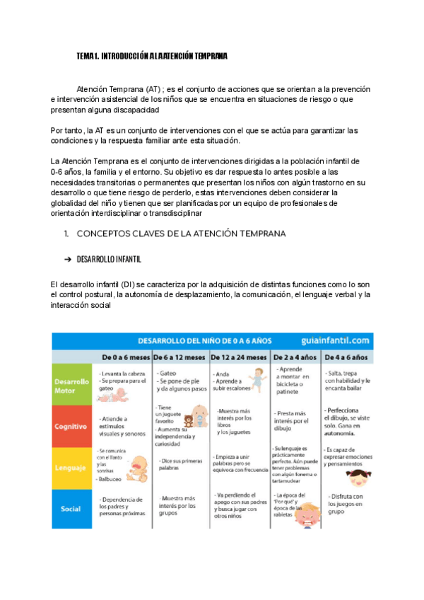 Apuntes Tema 1 (parte 1, 2, 3) Fundamentos de la Atención Temprana, 1º Educación Infantil. UEX