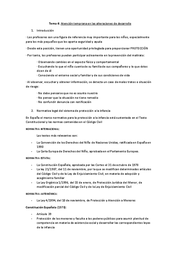 Apuntes Tema 4 Fundamentos de la Atención Temprana, 1º Educación Infantil. UEX