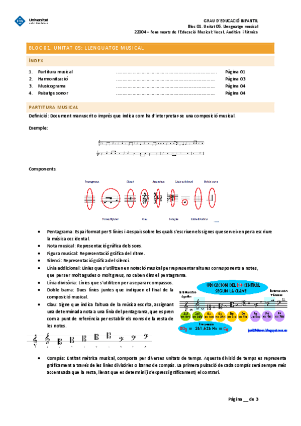 Apunts BLOC 01. Fonaments de l'Educació Musical: Vocal, Auditiva i Rítmica