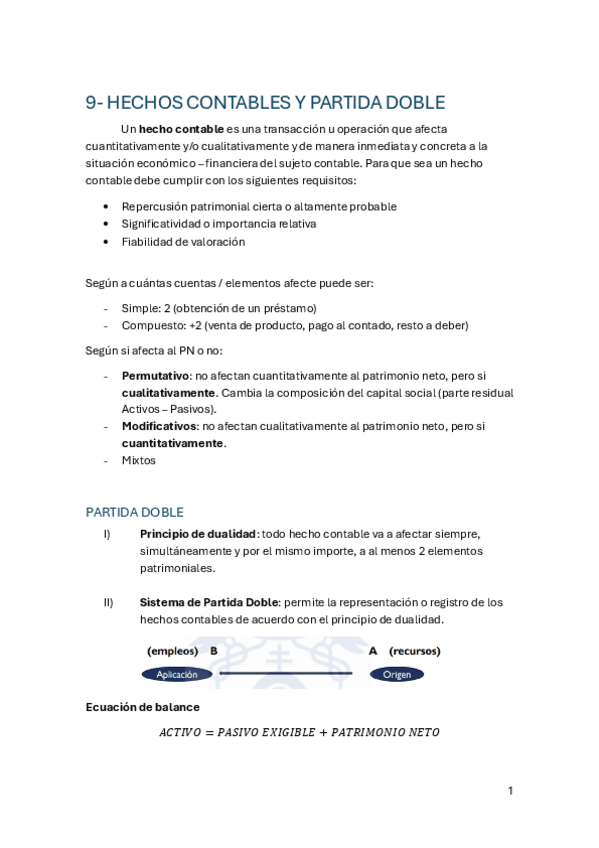 Tema 9 y 10 apuntes resumidos completos de Hechos Contables, Partida Doble, Principio de Devengo y Cuenta de Resultados explicada