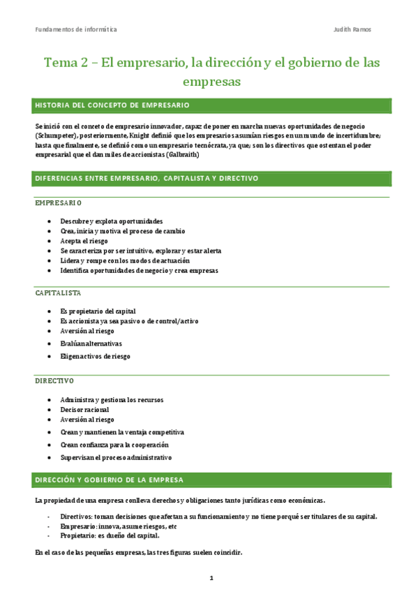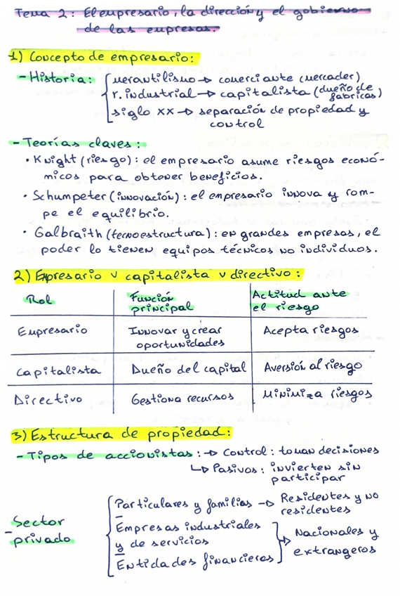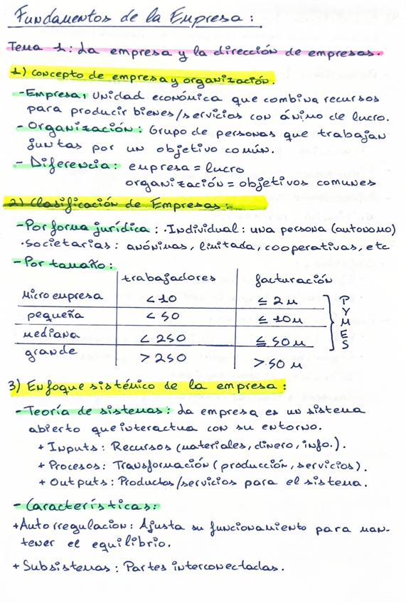 Apuntes sobre los dos primeros temas (junto a un par de esquemas) de la asignatura Fundamentos de Empresa