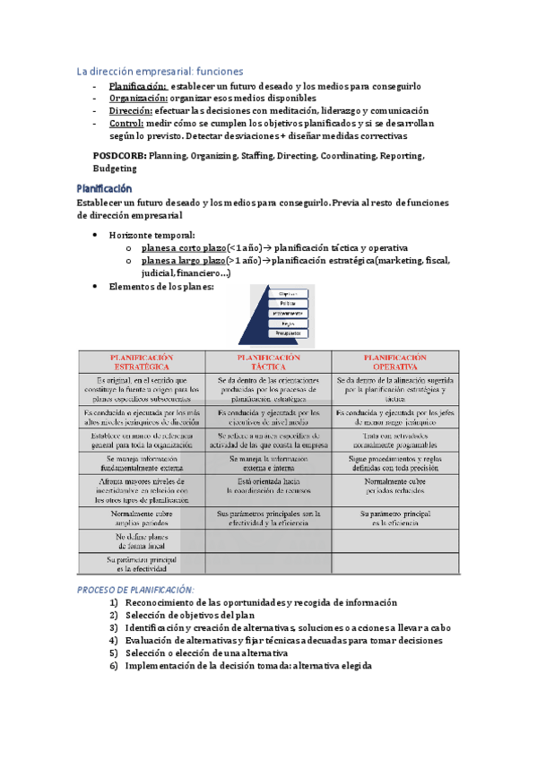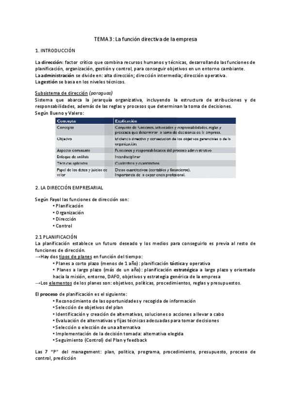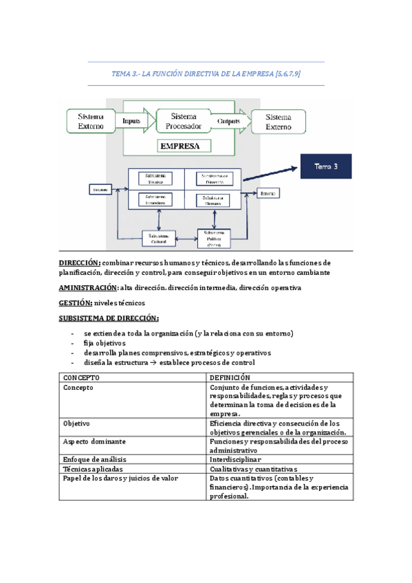 Apuntes tema 3 Funciones Directivas de la Empresa explicados y resumidos