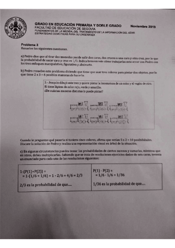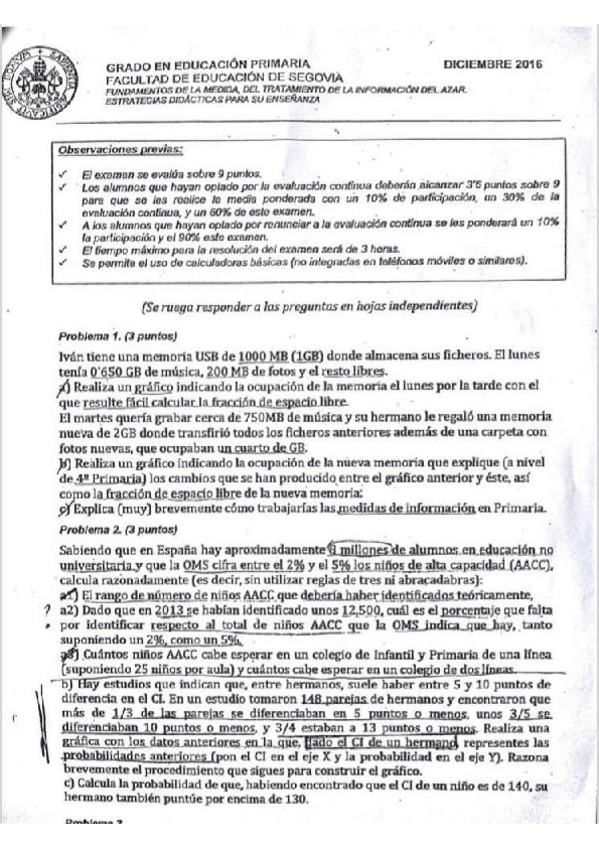 He publicado nuevos apuntes de 4º Fundamentos de la Medida, del Tratamiento de la Información y del Azar. Estrategias Didácticas para su Enseñanza.: Exámenes