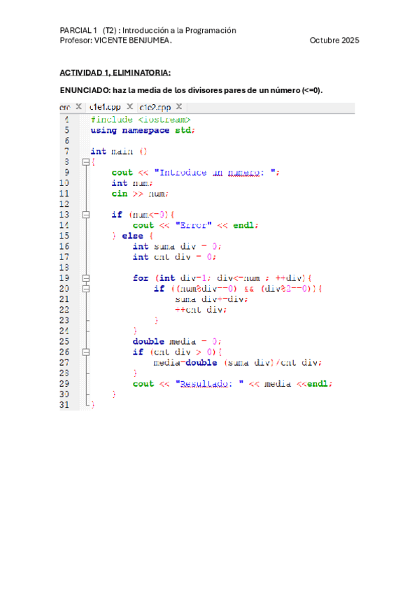 He publicado nuevos examenes de 1º Fundamentos de la Programación: Ejercicio 1 Parcial 1.cpp.cpp