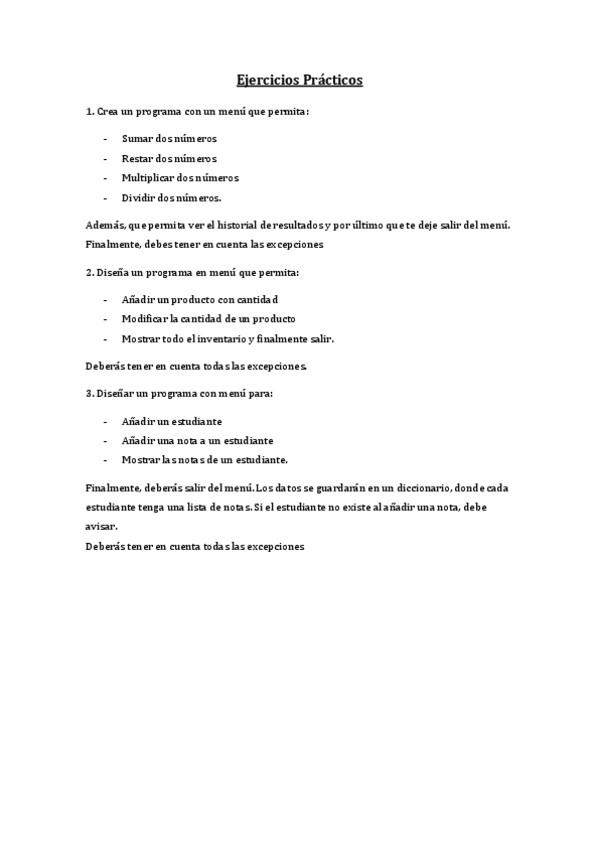 ejercicios para practicar para el examen