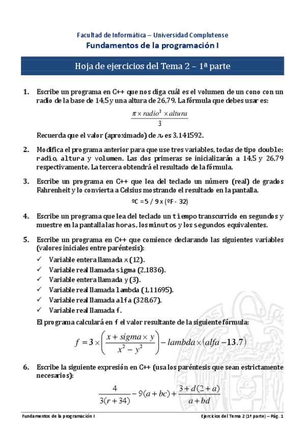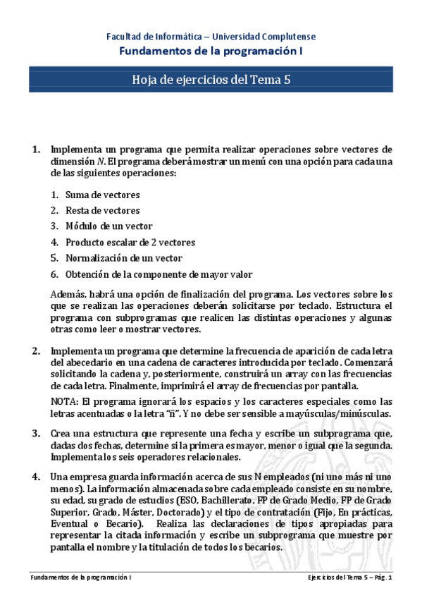 He publicado nuevos practicas de 1º Fundamentos de la Programación I: Práctica 5 FP - w.pdf