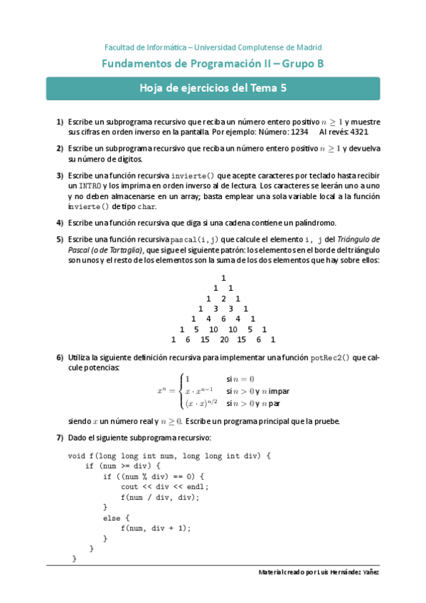 He publicado nuevos apuntes de 1º Fundamentos de la Programación II: recursion.pdf