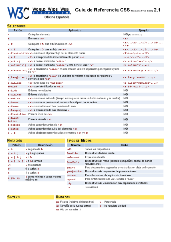 He publicado nuevos apuntes de 4º FUNDAMENTOS DE LA PROGRAMACIÓN MULTIMEDIA: Guia de Referencia Rapida CSS 2.1.pdf