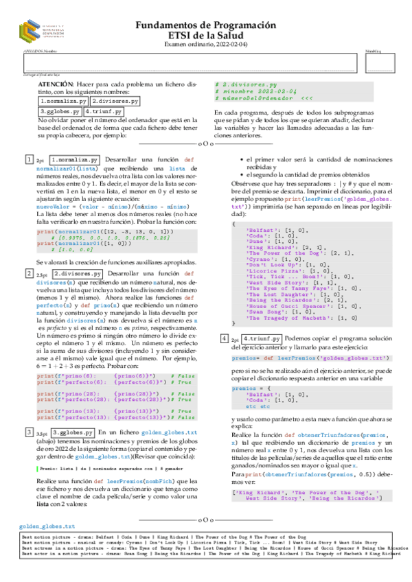 He publicado nuevos examenes de 1º Fundamentos de la Programación: examen-04-02-2022