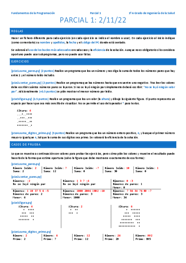 He publicado nuevos examenes de 1º Fundamentos de la Programación: Primer parcial RESUELTO (02/11/2022)