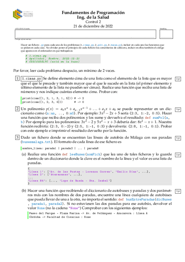 He publicado nuevos examenes de 1º Fundamentos de la Programación: Segundo parcial RESUELTO (21/12/2022)