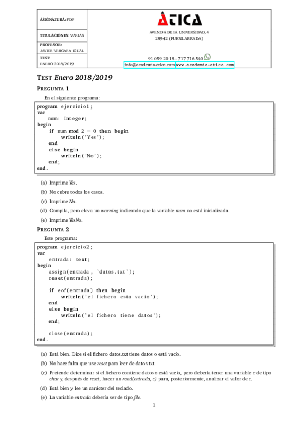 He publicado nuevos apuntes de 1º Fundamentos de la Programación: TestEnero1819.pdf