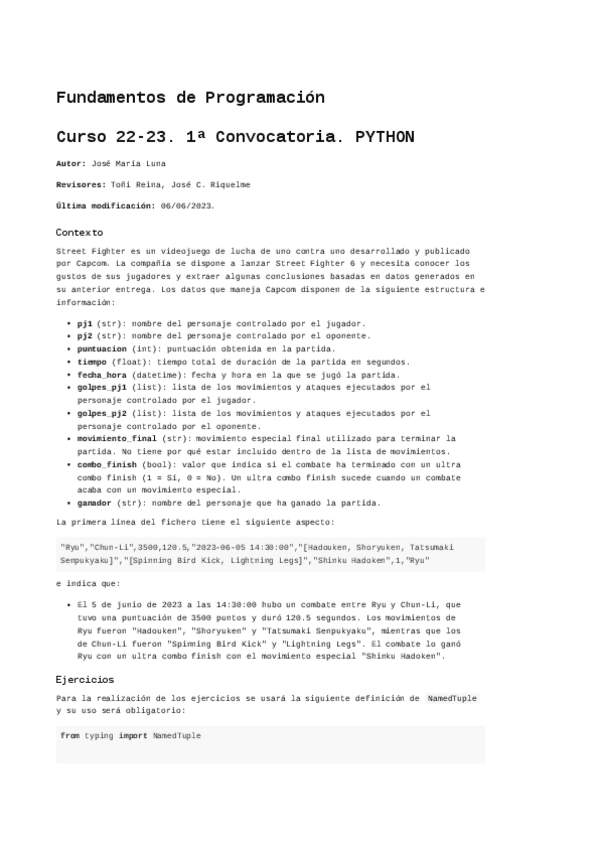 He publicado nuevos examenes de 1º Fundamentos de la Programación: primera convocatoria 2022 resuelto - PYTHON