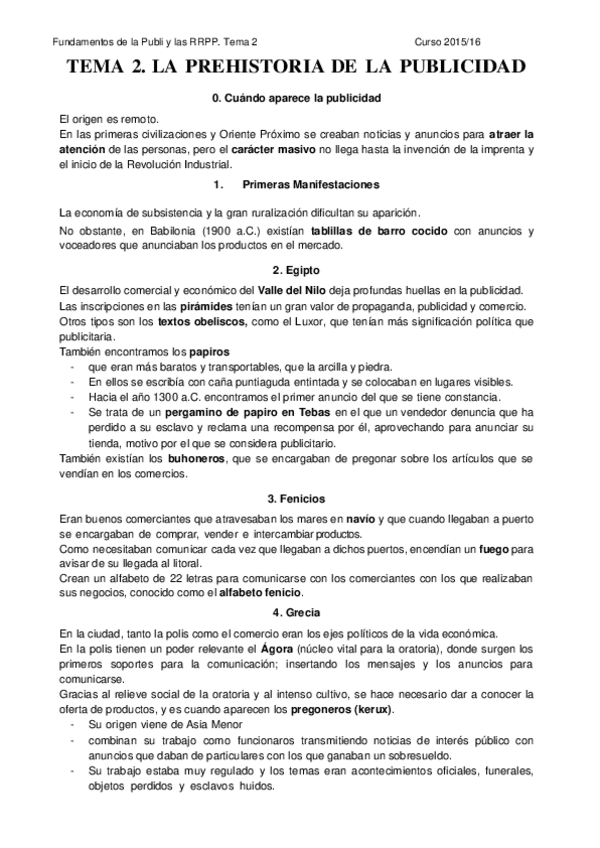 He publicado nuevos apuntes de 3º Fundamentos de la Publicidad y las Relaciones Públicas: prehistoria-e-historia-publicidad.pdf