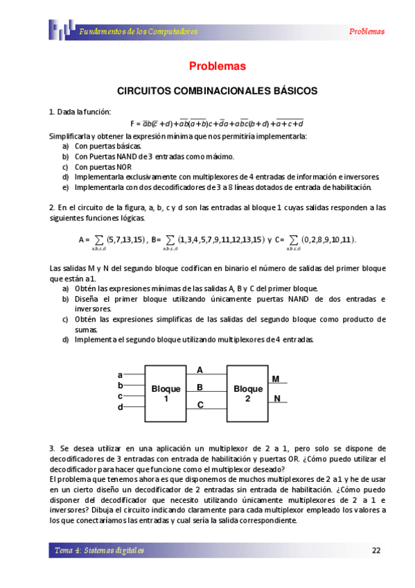 He publicado nuevos ejercicios de 1º Fundamentos de los Computadores: Problemas-Circuitos-Combinacionales.pdf