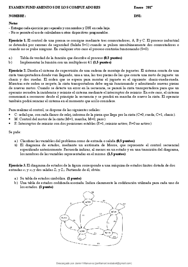 He publicado nuevos examenes de 1º Fundamentos de los Computadores: Examen enero 2017.pdf
