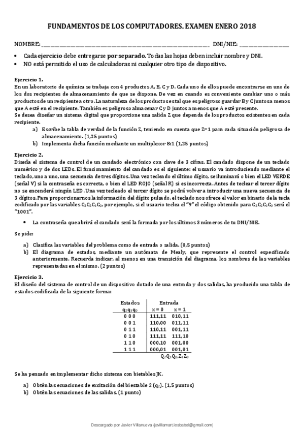He publicado nuevos examenes de 1º Fundamentos de los Computadores: Examen Enero 2018.pdf