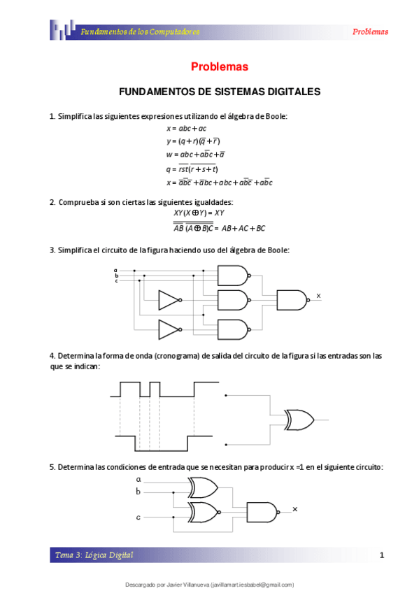 He publicado nuevos ejercicios de 1º Fundamentos de los Computadores: Problemas boole y logica digital.pdf