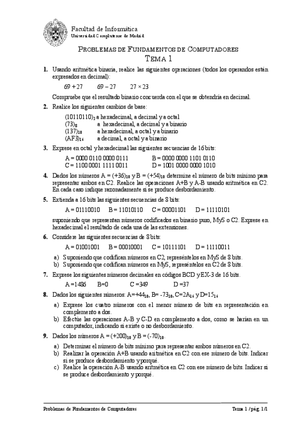 He publicado nuevos ejercicios de 1º Fundamentos de los Computadores: EJERCICIOS TEMA 1 2 3
