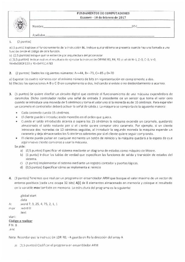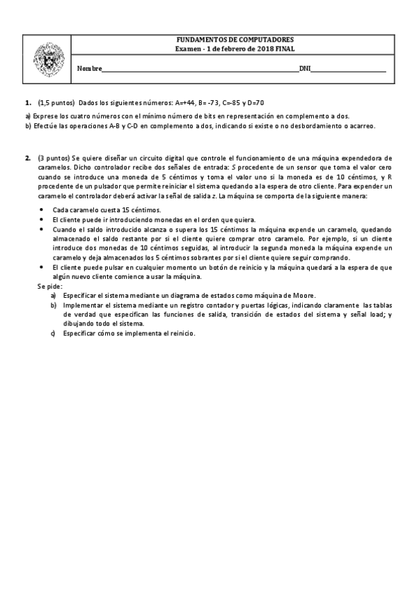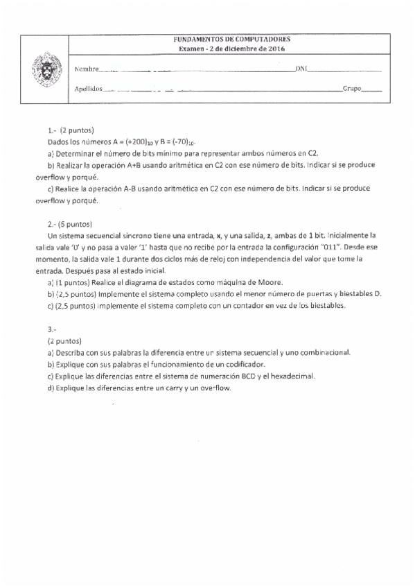 He publicado nuevos examenes de 1º Fundamentos de los Computadores: EXAMEN RESUELTO PARCIAL 1