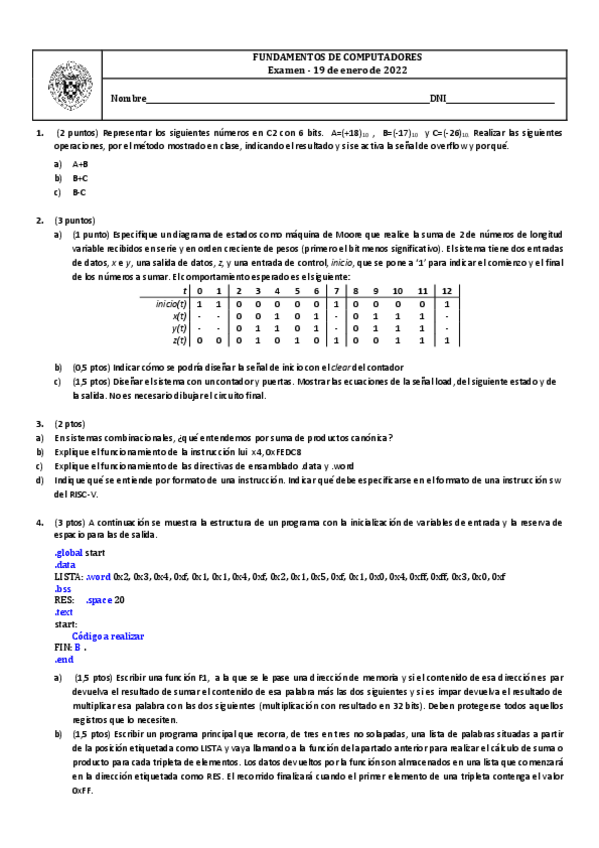 He publicado nuevos examenes de 1º Fundamentos de los Computadores: RISCV RESUELTOS