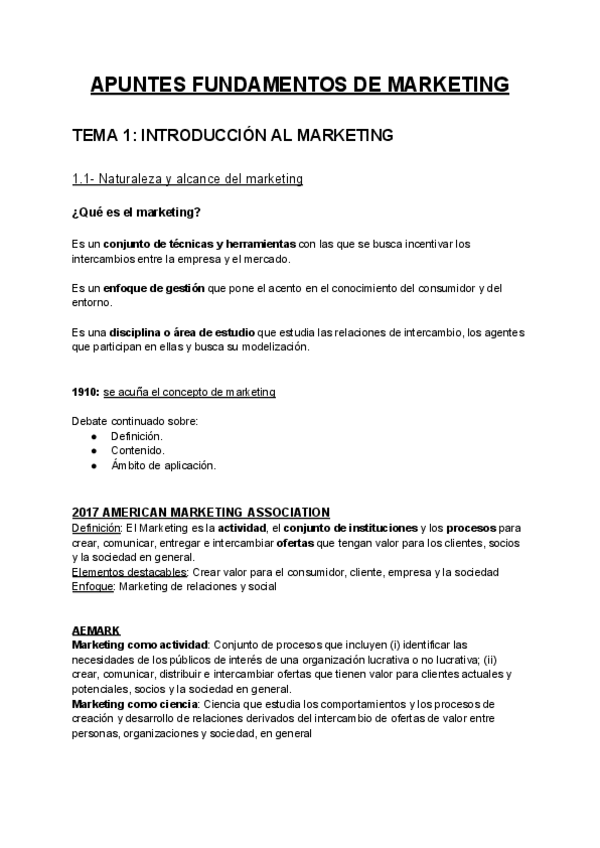 Apuntes completos de Fundamentos de Marketing