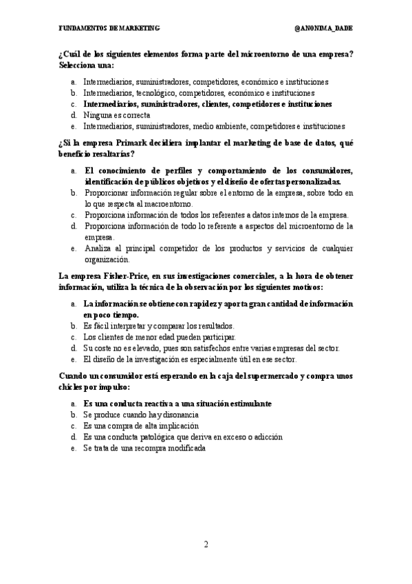 He publicado nuevos apuntes de 2º Fundamentos de Marketing: PREGUNTAS 100 DE EXAMEN