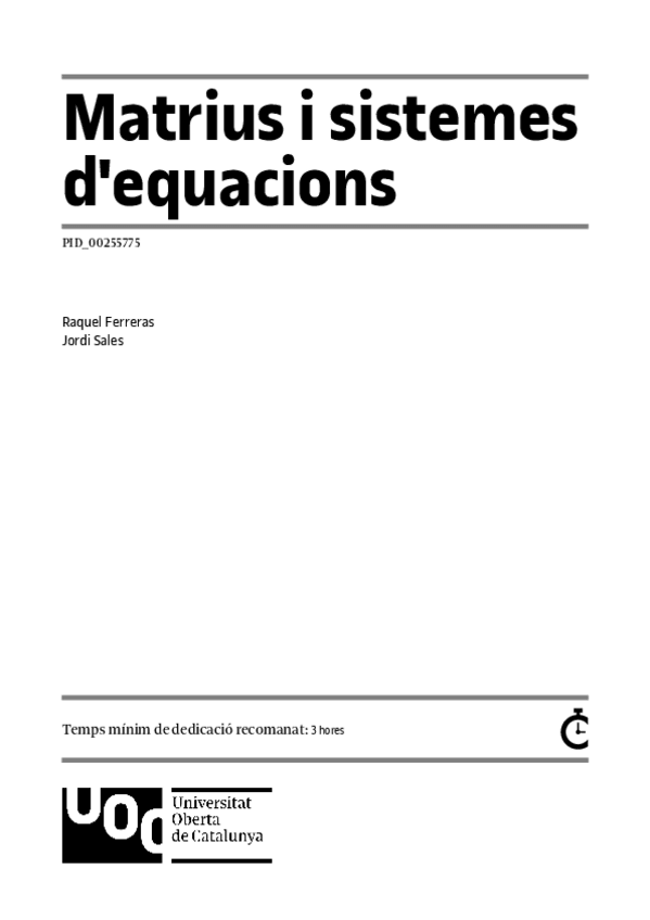Resumen de la teoría de matrices y sistemas ecuacionales