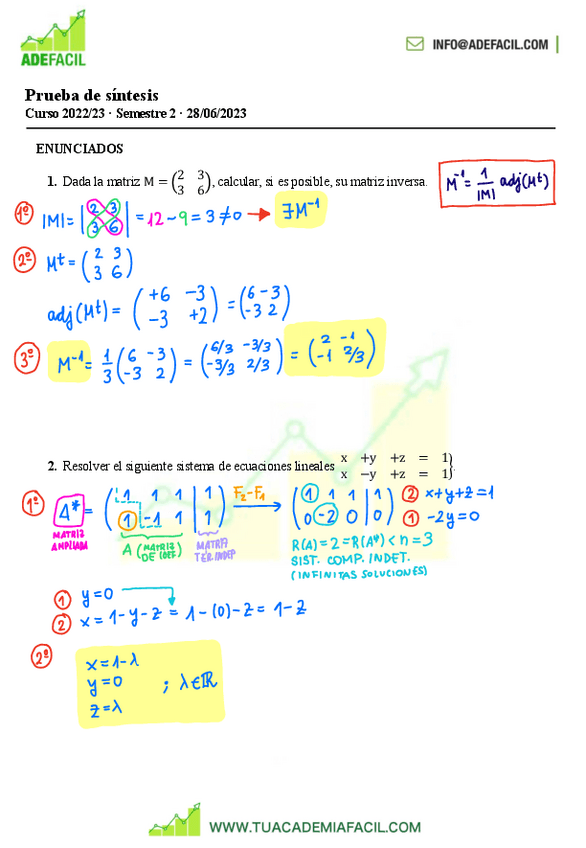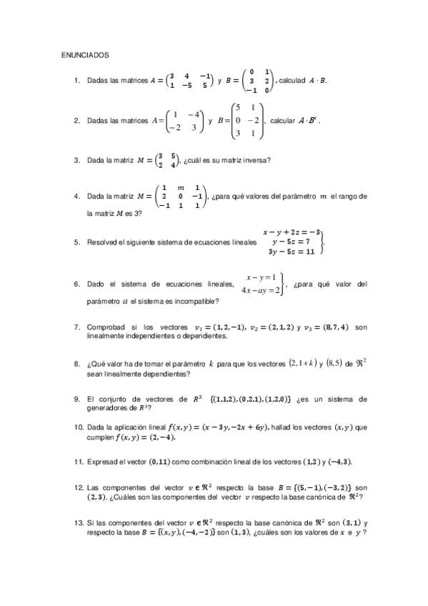 Matrices y Sistemas. Resumen