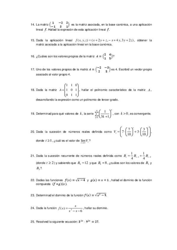Ejercicios de Fundamentos de las Matemáticas de ADE. Recopilatorio de ejercicios de las pruebas finales (exámenes)