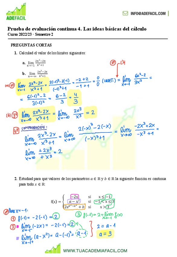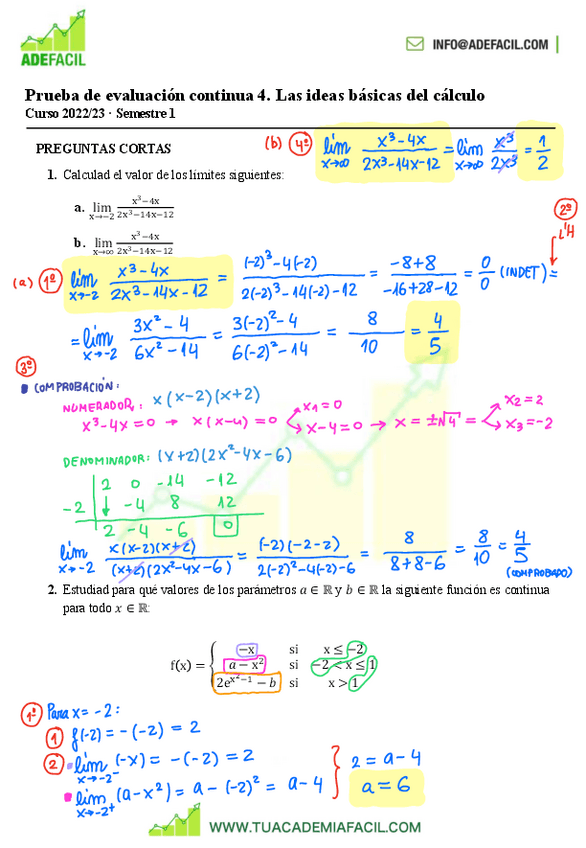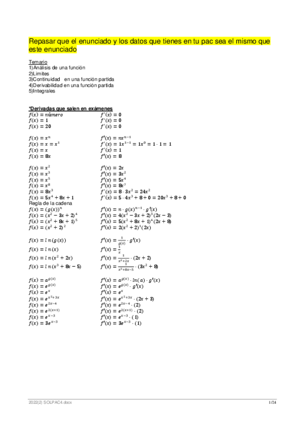 Explicaciones profesor particular relativas a la PAC4 5.12.2022. Temario de Función, limites, continuidad, derivabilidad y Integrales.