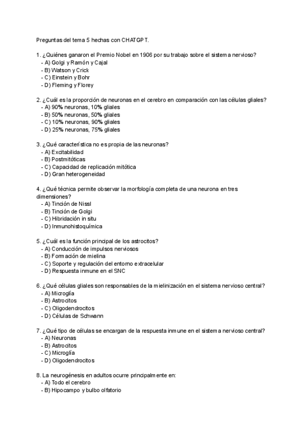 He publicado nuevos test de 1º Fundamentos de Neurociencia I: Aspectos Celulares: Preguntas-neuro-tema-5-CHATGPT.pdf