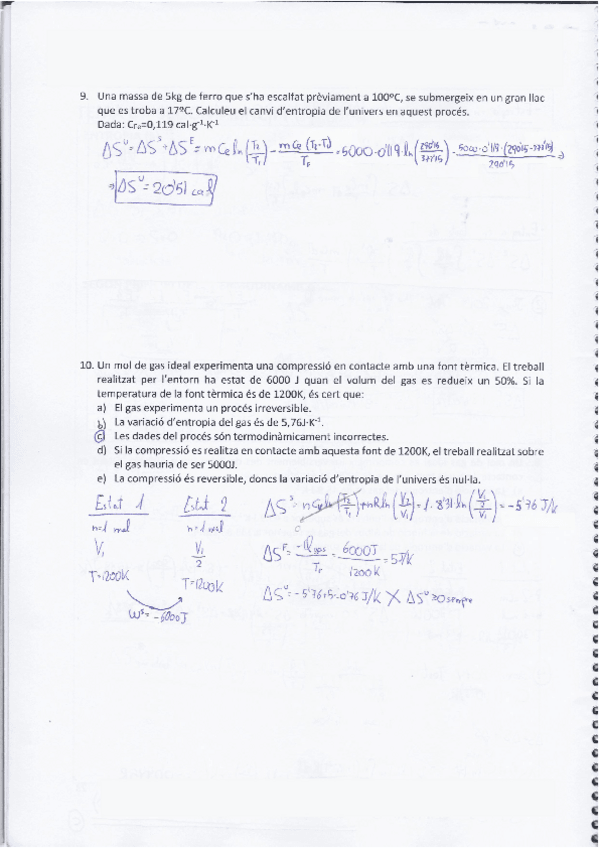 Termodinàmica Exercicis