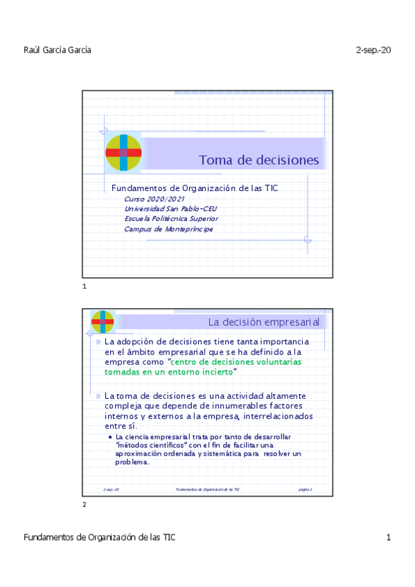 He publicado nuevos apuntes de 1º FUNDAMENTOS DE ORGANIZACIÓN DE LAS TIC: 6-Toma-de-decisiones.pdf