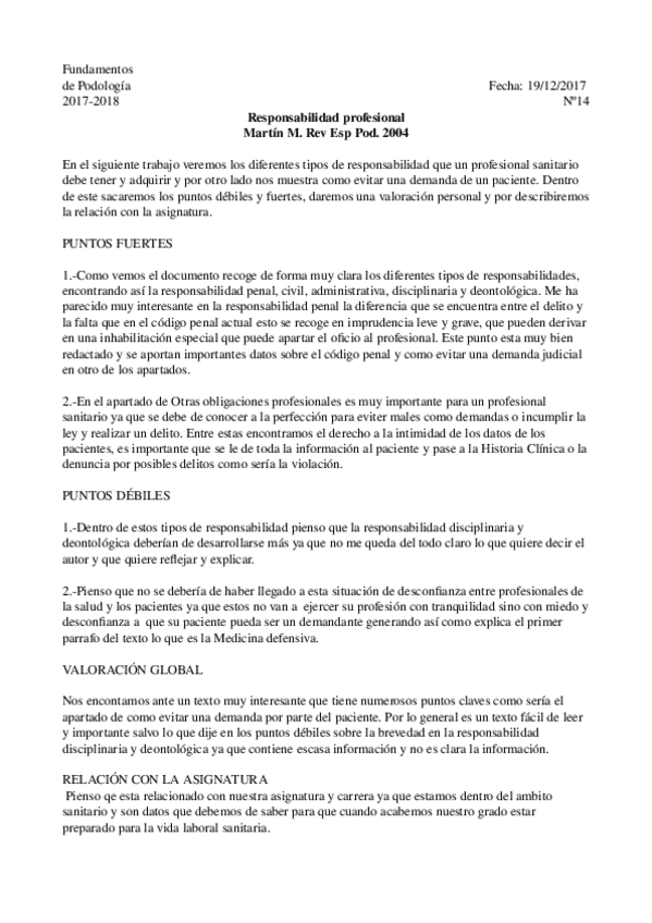 He publicado nuevos trabajos de 1º Fundamentos de Podología: Responsabilidad profesional.odt