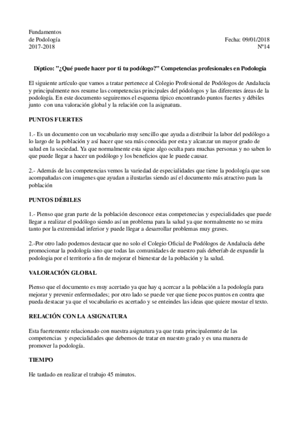 He publicado nuevos trabajos de 1º Fundamentos de Podología: consideraciones eticas.odt