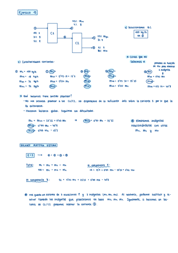 Ejercicios resueltos y sintetizados de balances de materia sin reacción química, la mayoría hechos en clase.