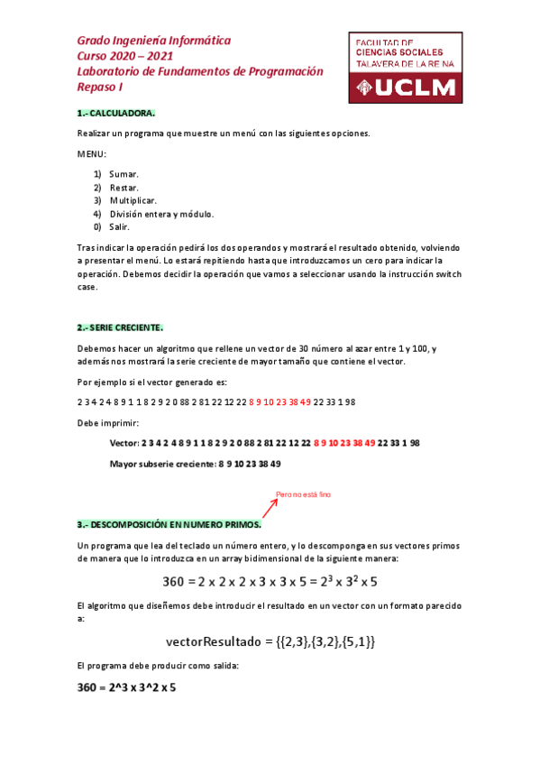 He publicado nuevos ejercicios de 1º Fundamentos de Programación I: ejerc4controlen.pdf
