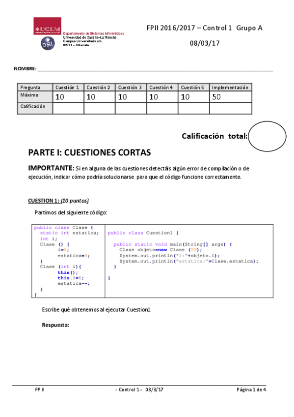 Este fue el segundo examen de prácticas 24/25 Nota: 9.75