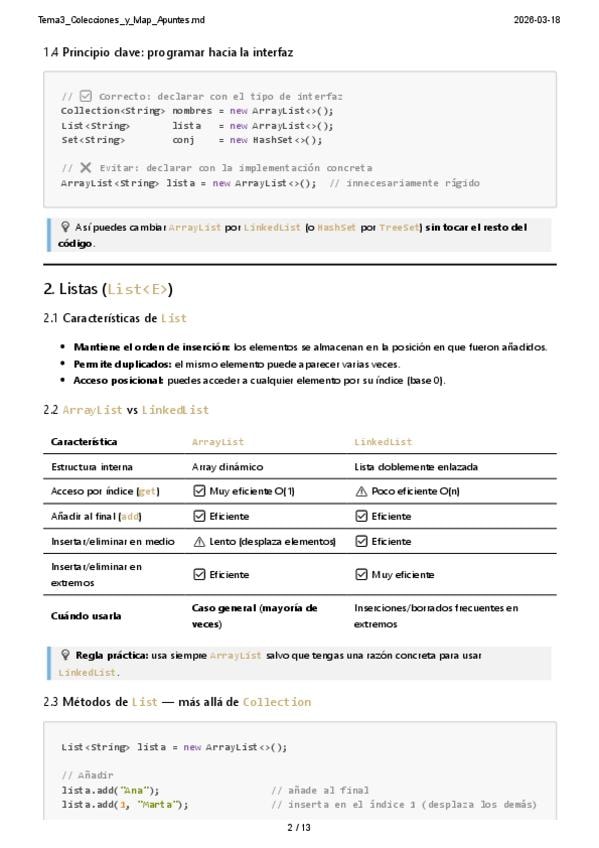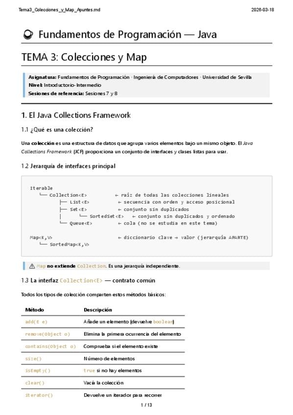 Resumen Tema 3 Colecciones y map en Java, del Segundo Cuatrimestre de Fundamentos de Programación