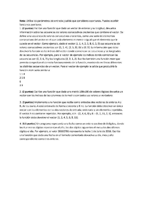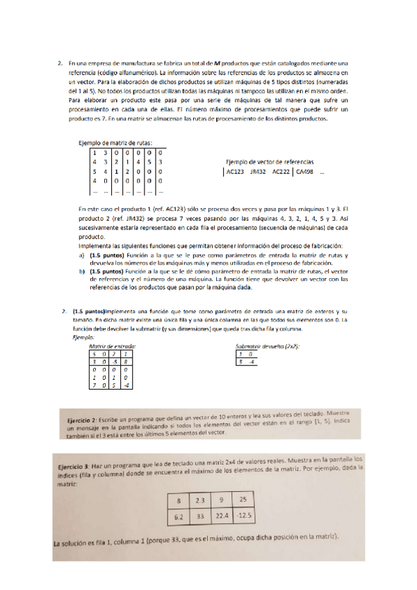 En este documento hay ejercicios de vectores y matrices de años anteriores para practicar para el parcial 1