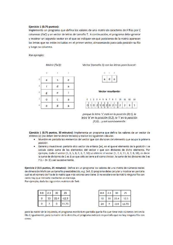 Ejercicios resueltos de vectores y matrices para el parcial 1 de programacion