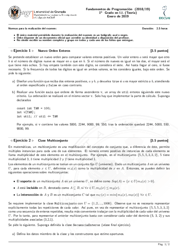 He publicado nuevos apuntes de 1º Fundamentos de Programación: Examen 2019 -- Extraordinaria