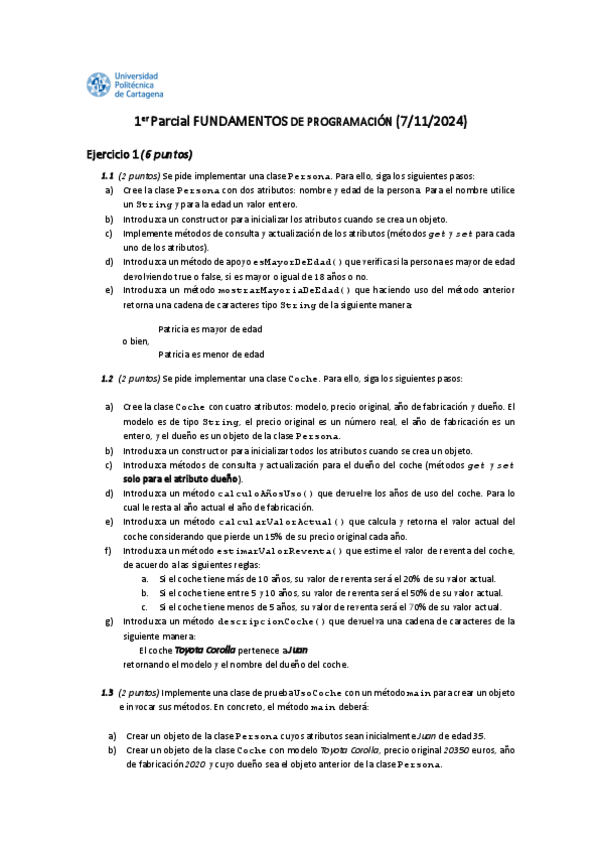 Este documento es el 1º parcial de Fundamentos de Programación de noviembre de 2024 del primer cuatrimestre del curso 1º de Ingeniería en Sistemas de Telecomunicación de la UPCT