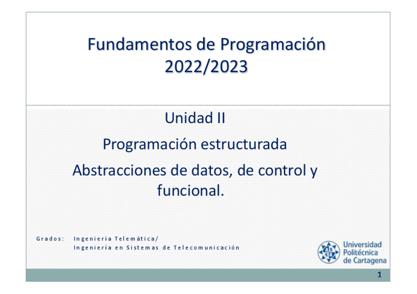 He publicado nuevos apuntes de 1º Fundamentos de Programación: IP 3 - Programación estructurada.pdf