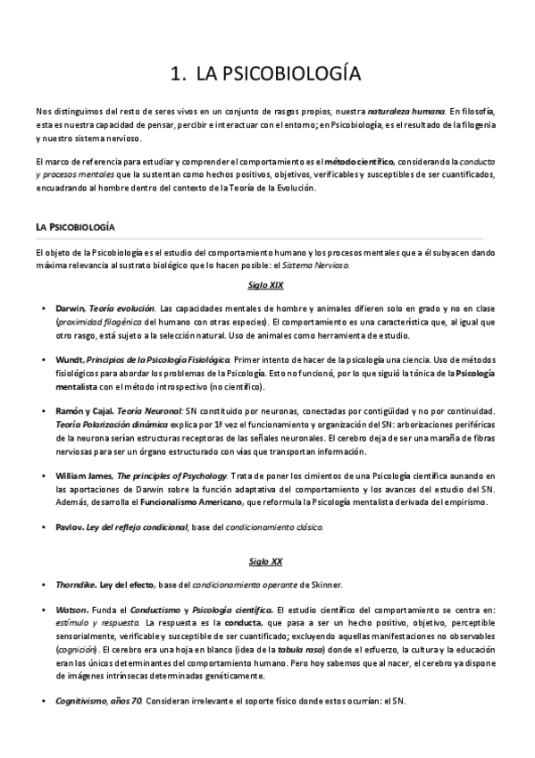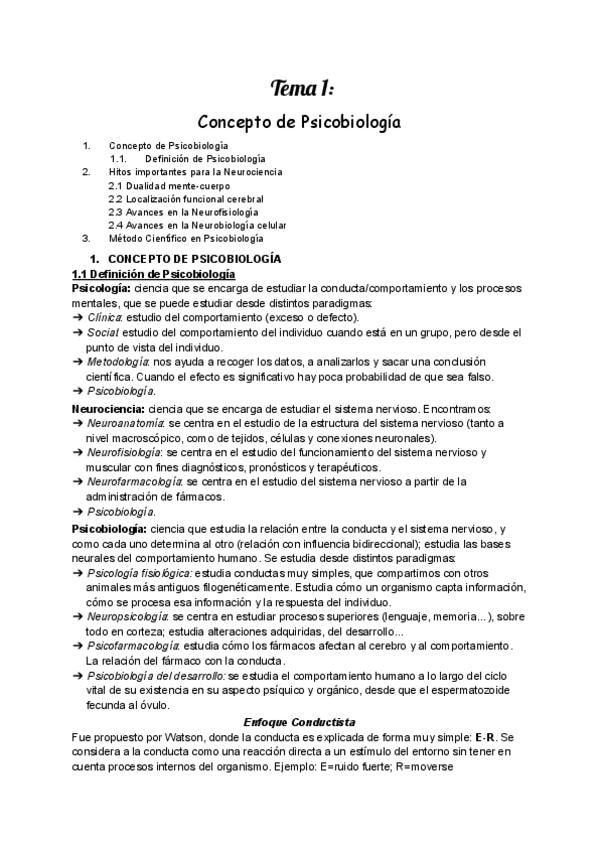 Apuntes para el primer parcial de psicobiología (incluye temas 1, 2, 3, 4 y 5)