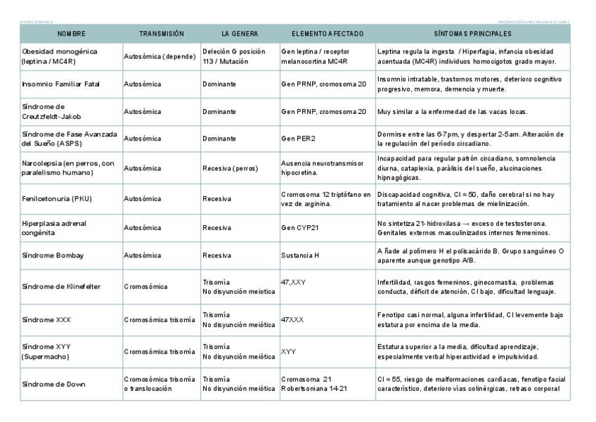 Fundamentos de psicobiologia 1ºcuatri. Recopilatorio de las enfermedades que aparecen en el tema 2 agrupadas y ordenadas por tipo de transmisión/causa